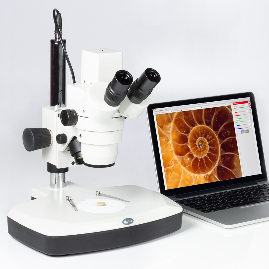 Un microscopio estereoscópico básico para entornos educativos en escuelas y universidades. El sistema óptico Greenough ofrece imágenes de alta calidad con un zoom parafocal 4: 1 con un aumento estándar de 10X-40X. La cámara USB de 3MP integrada con el software Motic Images Plus 3.0 incluido es la base de una estación de documentación instructiva para el trabajo de los estudiantes.