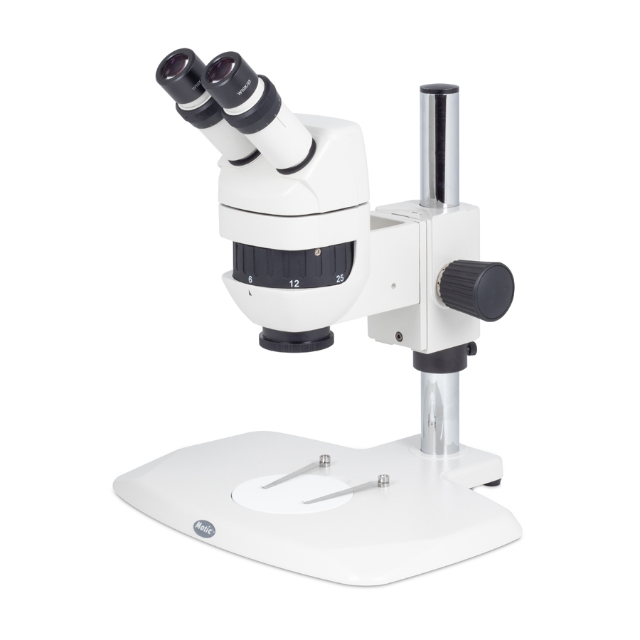 Microscopio estereoscópico para una amplia gama de aplicaciones de ciencias biológicas y de materiales en campos de investigación y de rutina. El sistema óptico CMO (Common Main Objective) ofrece imágenes impresionantes con una torreta de 4 posiciones de aumento total de 6X, 12X, 25X y 50X en el equipo acromático estándar. El instrumento viene sin iluminación integrada. Siéntase libre de elegir la mejor opción para su muestra específica: iluminación oblicua para señalar la topografía de la superficie, el anillo de luz homogéneo para una vista sin sombras. Es posible actualizar la documentación mediante un tubo fotográfico intermedio.