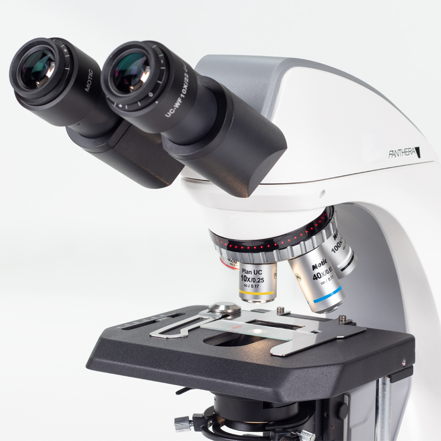 Panthera DL es un microscopio Wi-Fi con una cámara Moticam X3 integrada con una resolución de captura de 4MP. Las nuevas casas de escenario sin bastidor patentadas son un soporte de deslizamiento doble único para operar con una sola mano. La iluminación es proporcionada por una fuente de luz LED intercambiable de 3W / halógena de 30W en una configuración completa de Koehler. El sistema Motic LightTracer con un modo de bajo consumo integrado (encendido / apagado automático) y un indicador de retroalimentación LED ayuda a optimizar su flujo de trabajo.